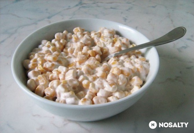 - A majonézt kikeverjük a mustárral és a tejföllel, majd az egészet összekeverjük a kukoricával.